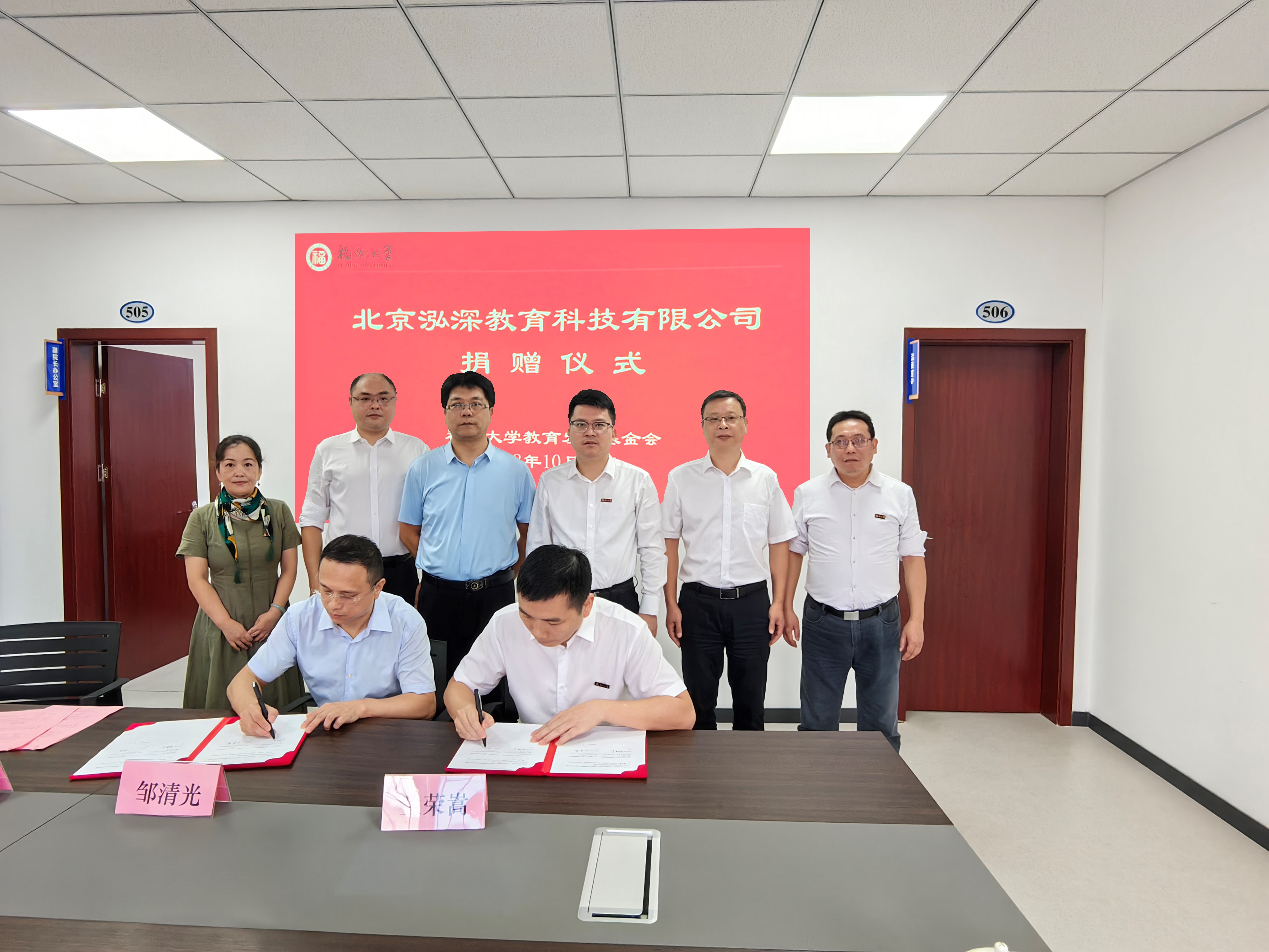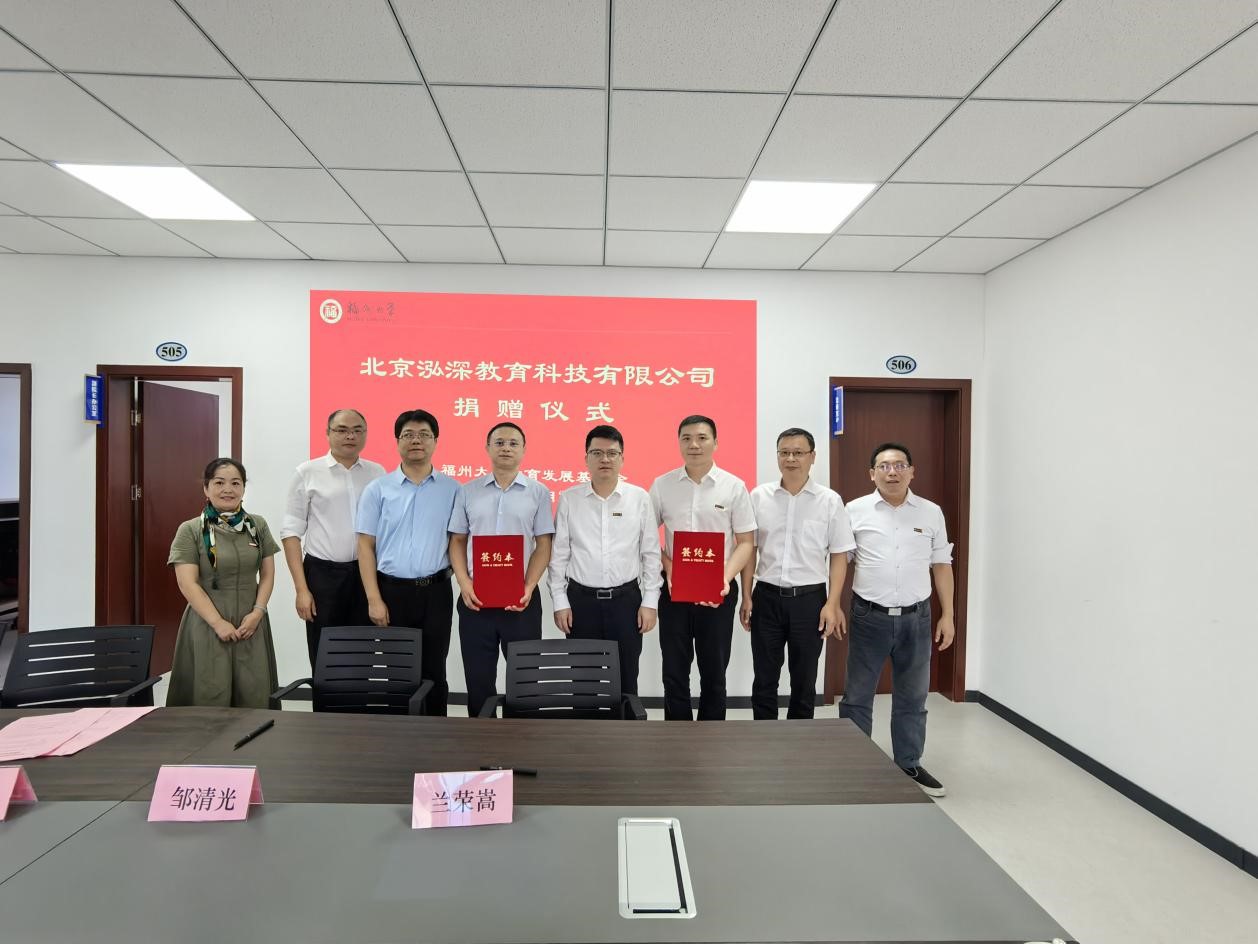 10月26日上午,北京泓深教育科技有限公司捐赠签约仪式在福州大学继续教育学院会议室举行,北京泓深教育科技有限公司董事长邹清光,福州大学党委常委、副校长郭文忠出席捐赠仪式。仪式由继续教育学院负责人主持。