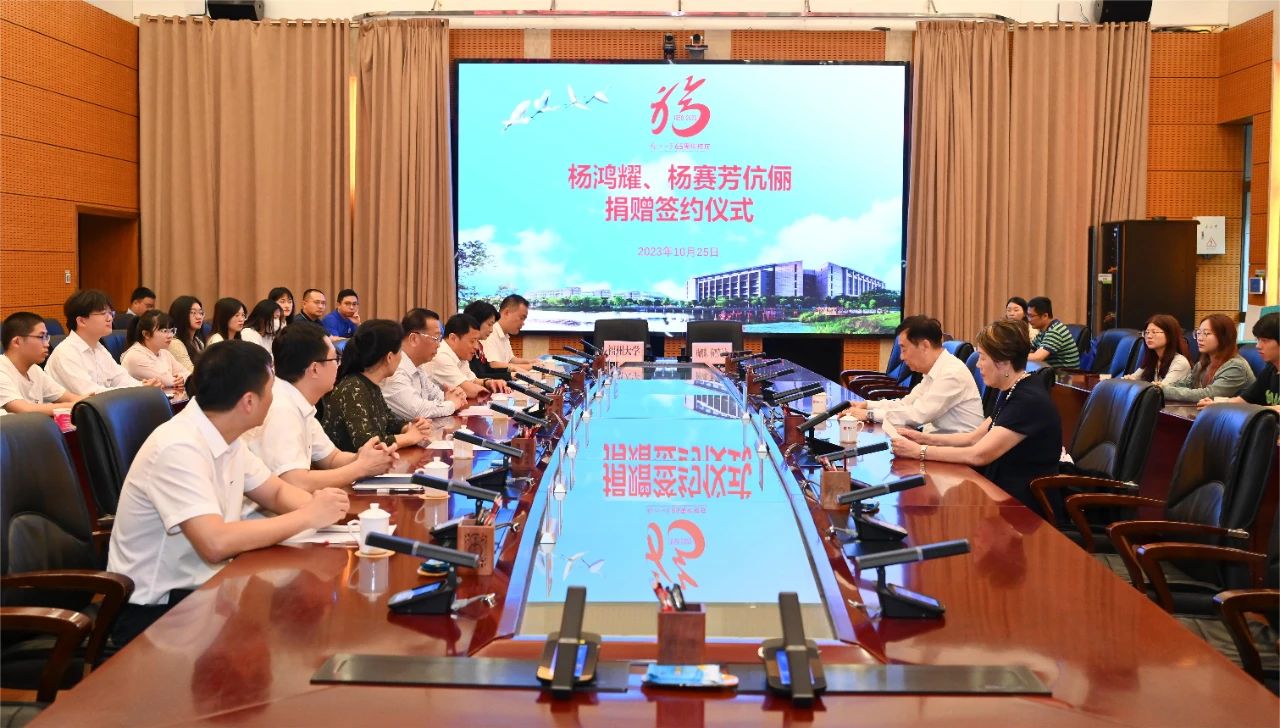10月25日下午,校友杨鸿耀及其夫人杨赛芳向学校捐赠400万港币支持学校教育事业发展。捐赠签约仪式在旗山校区行政南楼举行,校党委书记陈国龙出席捐赠仪式。捐赠仪式由校党委副书记张星主持。
