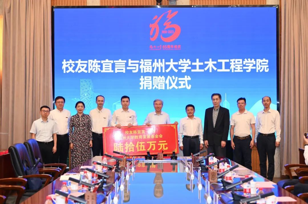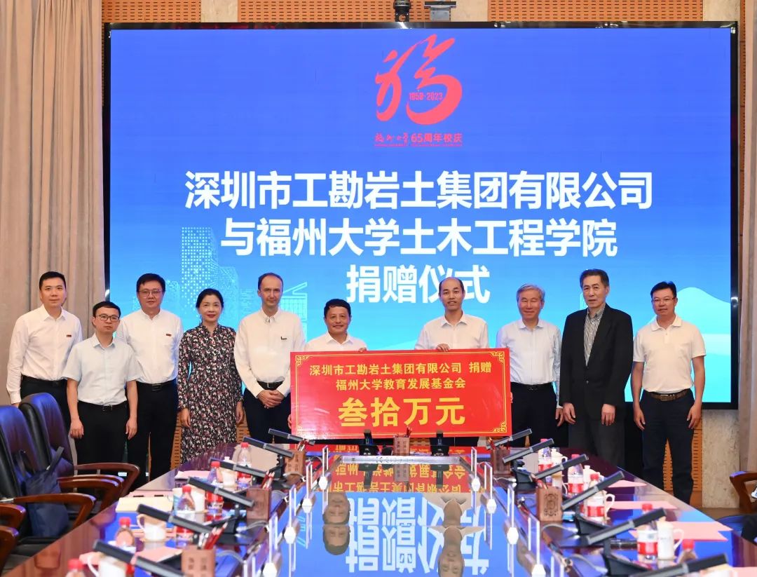 签约仪式上,全国工程勘察设计大师、78级路桥专业陈宜言校友为庆祝母校65周年华诞,以个人名义捐款65万元设立“陈宜言奖教金”;深圳市工勘岩土集团有限公司捐款30万元,用于支持土木工程学院教育事业发展。