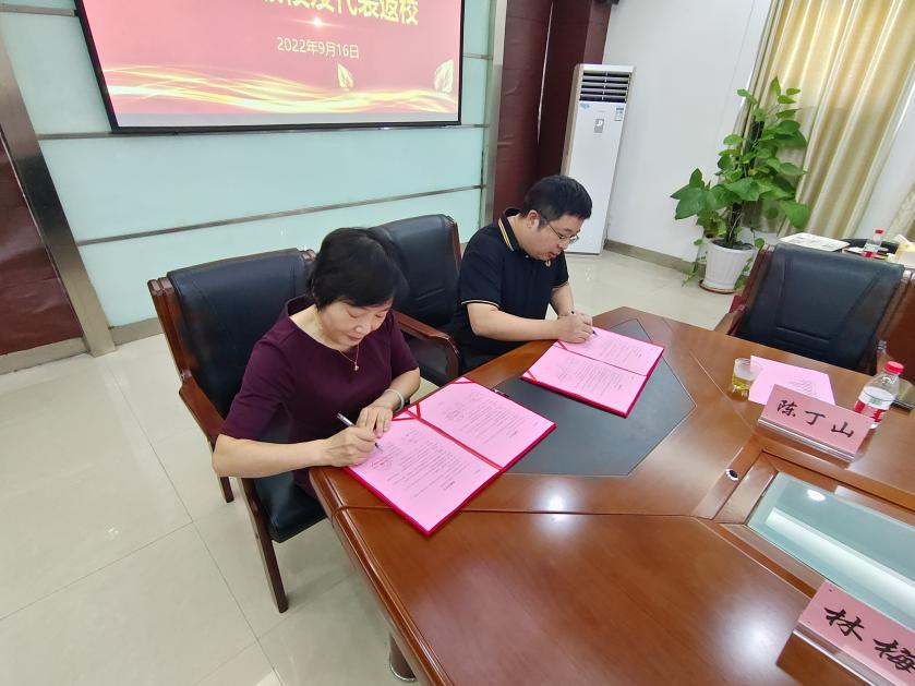 倪朝霞书记和1998级校友代表余永德签订捐赠协议书