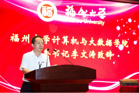 计算机与大数据学院党委书记李文涛首先向出席本次活动的各位嘉宾、各位校友表示诚挚欢迎,向各单位对学院教育事业的关心和支持表示衷心感谢与崇高敬意。李文涛书记指出,计算机与大数据学院高度重视人才培养,坚持为党育人、为国育才,学生思想引领、文化建设、服务世界和创新创业等工作特色鲜明,成效显著,为国家和地区培养了大量专业人才,学校、学院的每一点进步,都离不开广大校友的关怀和社会各界的支持。他勉励计算机学子抓住发展机遇,将国家、学校及社会各界的关心关爱化为前进的动力,刻苦锤炼,奋力奋发,努力成为新时代勇于担当的新青年。