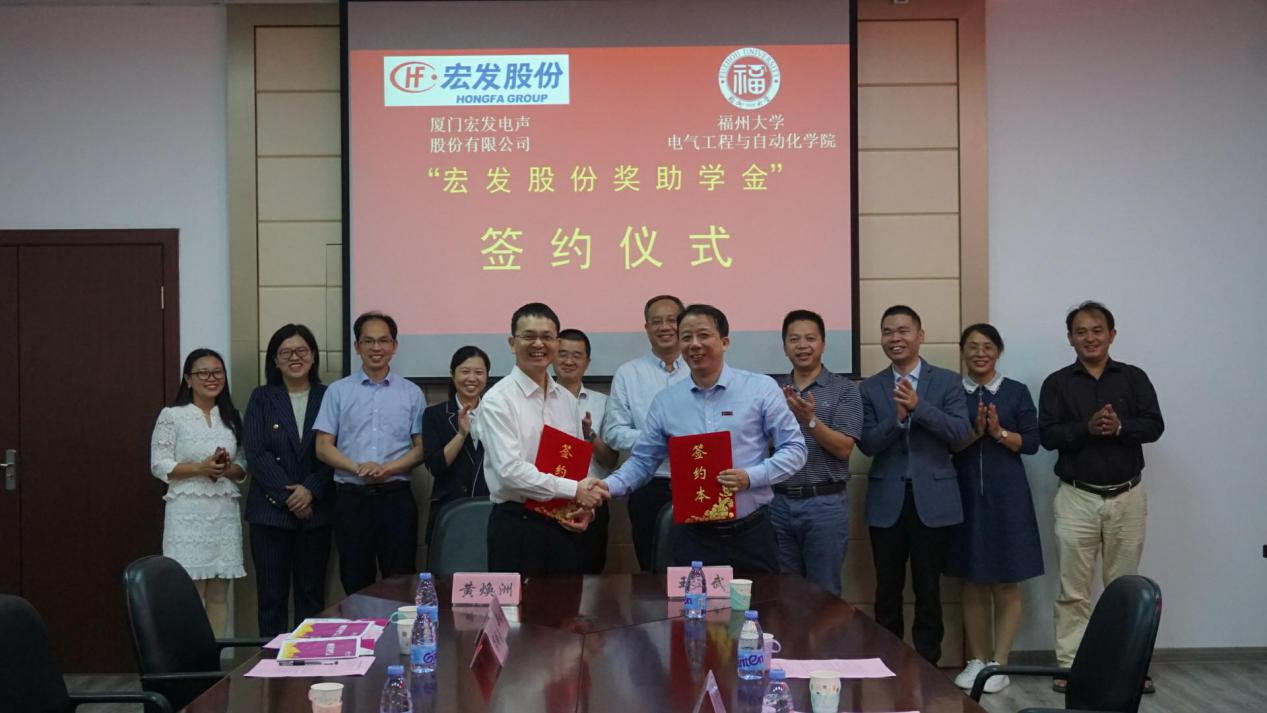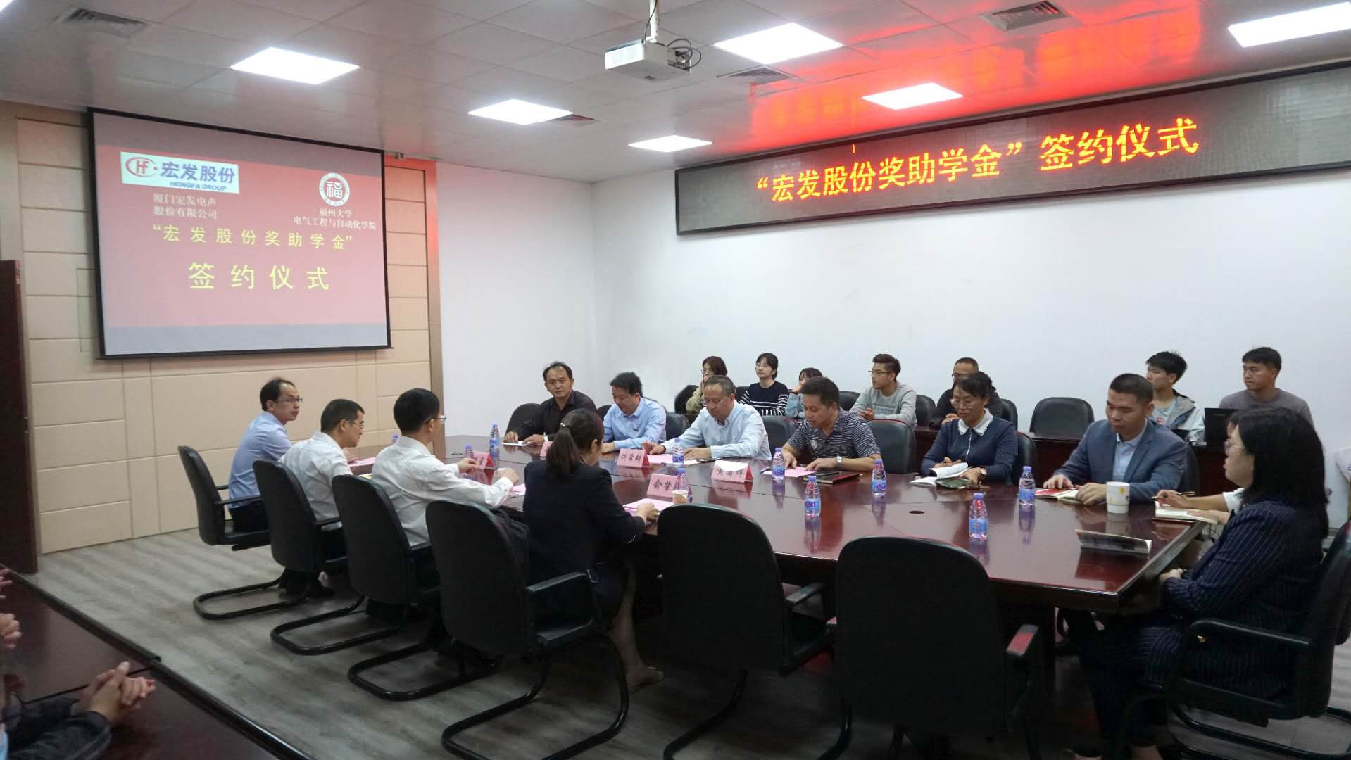 为进一步深化校企合作,促进产学研用深度融合,探索学院人才培养新模式,丰富资助育人新成效,10月28日上午8:30,电气学院与厦门宏发电声股份有限公司在学院南212会议室成功举行了“宏发股份奖助学金”签约仪式。