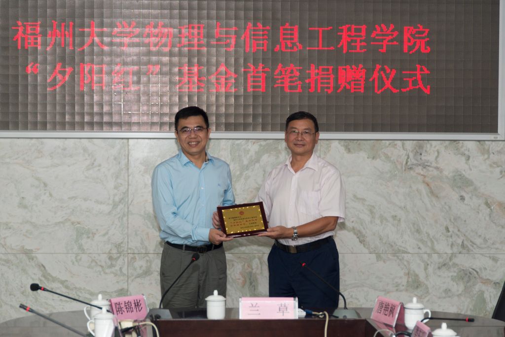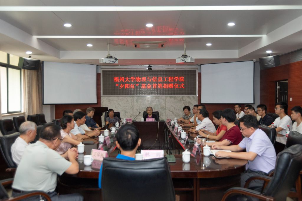 10月8日上午,福州大学物信学院 “夕阳红”基金首笔捐赠仪式在祥联厅会议室举行。黄志刚副校长、泉州天地星电子有限公司董事长魏腾雄先生出席捐赠仪式,学校校友会、离退休处、离退休协会、物信学院相关领导以及物信学院离退休老教师代表、2016级毕业班学生干部等参加捐赠仪式。