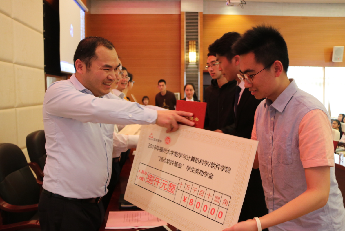 “顶点软件基金”学生奖助学金和“UP TOP”奖学金的设立是企业支持、社会关注和学院重视的体现,鼓励数计学子求实钻研,顽强拼搏,全面发展,进一步增强学院学术氛围和创新服务意识,激发学生创新求进,加强校企合作,共同培养符合社会需求的复合型人才。