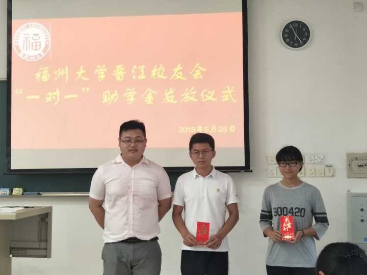 5月26下午,福州大学晋江校友会“一对一”助学金发放仪式在福州大学旗山校区东三教学楼402室举行,来自各学院的受助学生代表参加了此次仪式。