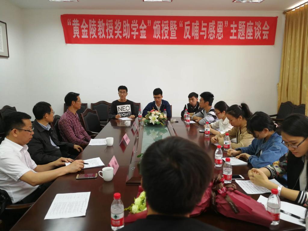 座谈会上,受奖助学生分别汇报了各自的学习、生活和工作情况,并表达了对黄金陵教授的感激之情,表示要刻苦学习、勇攀高峰、不负厚望。往届受资助的学生代表也汇报交流了自己的综合情况。