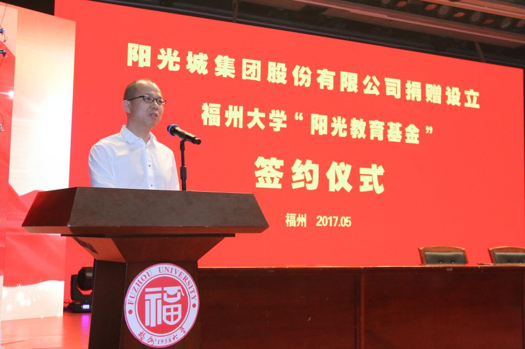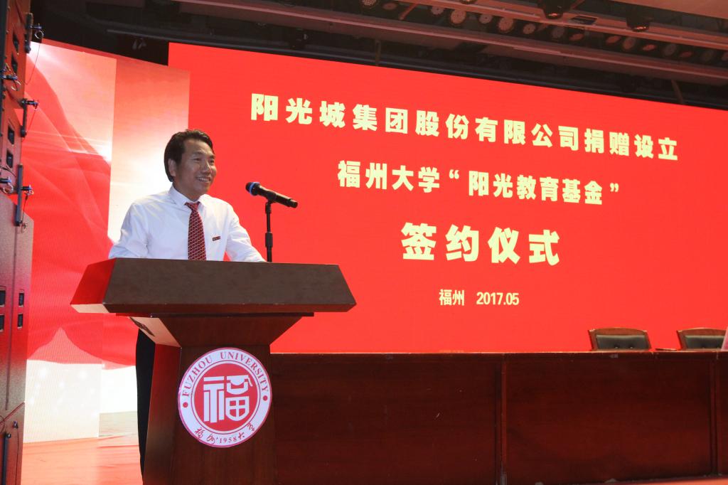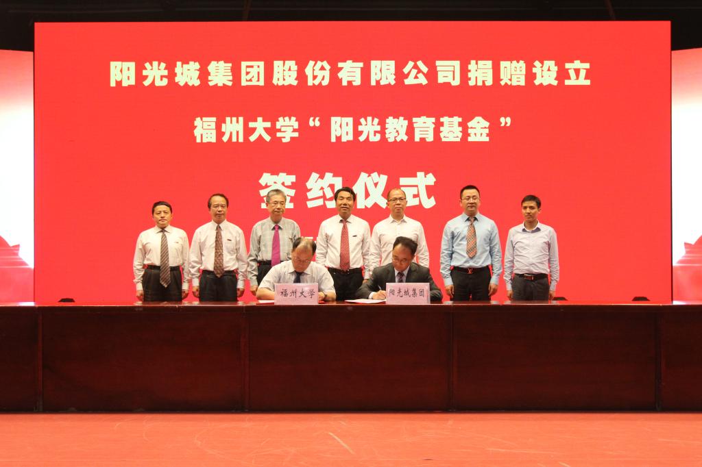 福州大学“阳光教育基金”由阳光城集团捐赠一千万元设立(下设“阳光奖教金”和“阳光奖学金”),自2016年起分10年、每年捐赠100万元表彰奖励我校100名优秀师生。学校有关部处负责人和各学院师生代表共500多人参加了签约仪式。