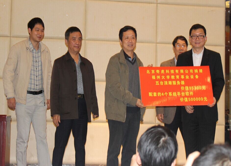 据悉,在林伟校友的积极牵线下,该批设备已顺利通过校教育发展基金会,列装到福州大学 “网络系统信息安全”福建省高校重点实验室,我校也成为北京奇虎科技有限公司捐助的第二所高校。该批设备将用于构建福州大学信息安全培训综合服务平台,为网络和信息安全专业人员提供网络基础及信息安全知识的学习培训、实训指导、攻防演练以及技能竞赛的实践环境和相关技术资源,为360杯全国大学生信息安全竞赛(华南赛区)基地建设提供服务,促进福州大学网络信息安全学科发展。